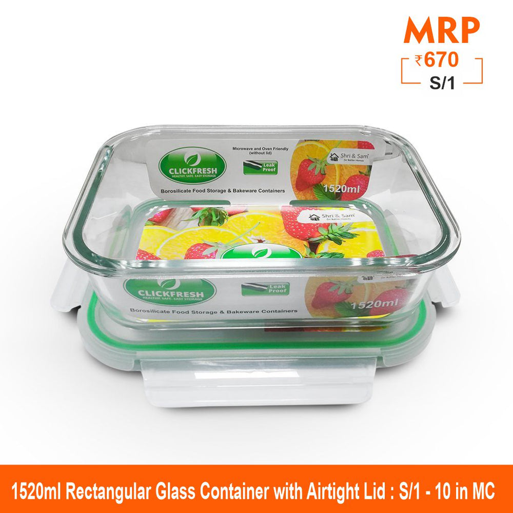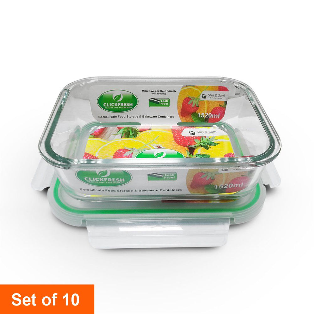 This Shri and Sam Clickfresh Food Storage & Bakeware Rectangular Glass Container is a leakproof and air-tight glass container. You can pack your favorite foods into this glass food storage container for your lunch and typical food storage without having to worry about any leakage. It will preserve the flavor and freshness of your food for long hours until your lunchtime. You can even use this as microwavable glass containers. You can heat your food by placing it in the microwave safely without having to worry about any harmful chemicals releasing into your food. Along with that, it is also oven safe which means that you can even bake your favorite foods in the oven using these Shri and Sam Clickfresh Glass containers.