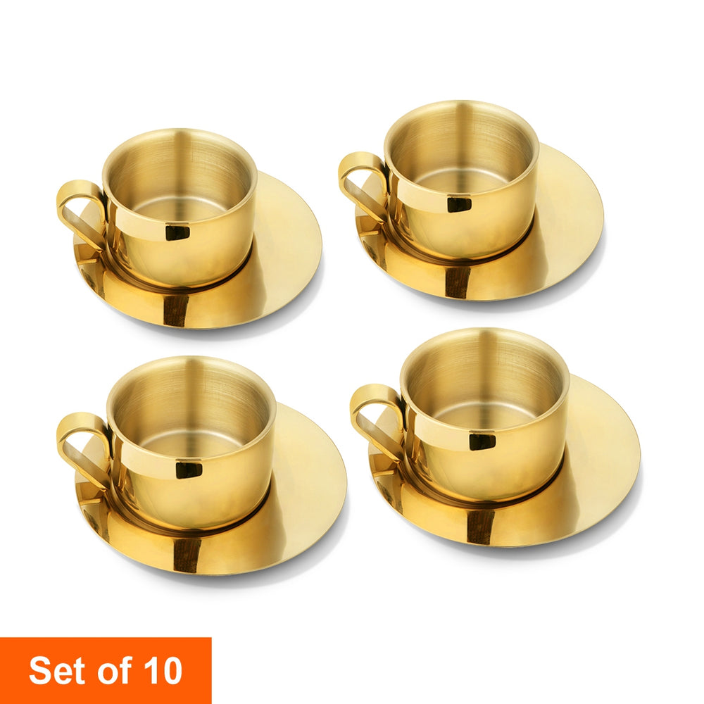 Shri and Sam presents serve hot beverages to your guests in style with this Cup and Saucer set. Made from premium quality stainless steel, the double wall helps to serve tea or coffee, since its double wall it does not require handles,that makes it get its classy looks. This set is silver in color, that has mirror finish on the outside and matt finish on the inside. This product will not break or bend easily, is a highly durable, which makes it excellent for every day use. This set by Shri and Sam will certainly get you compliments when you place it front of a guest. This set is 100% food safe, that allows it to not react with the food. With this price, this is a must buy set for any kind of kitchen, as it will be a huge plus in your serve ware category.