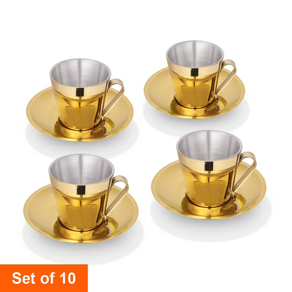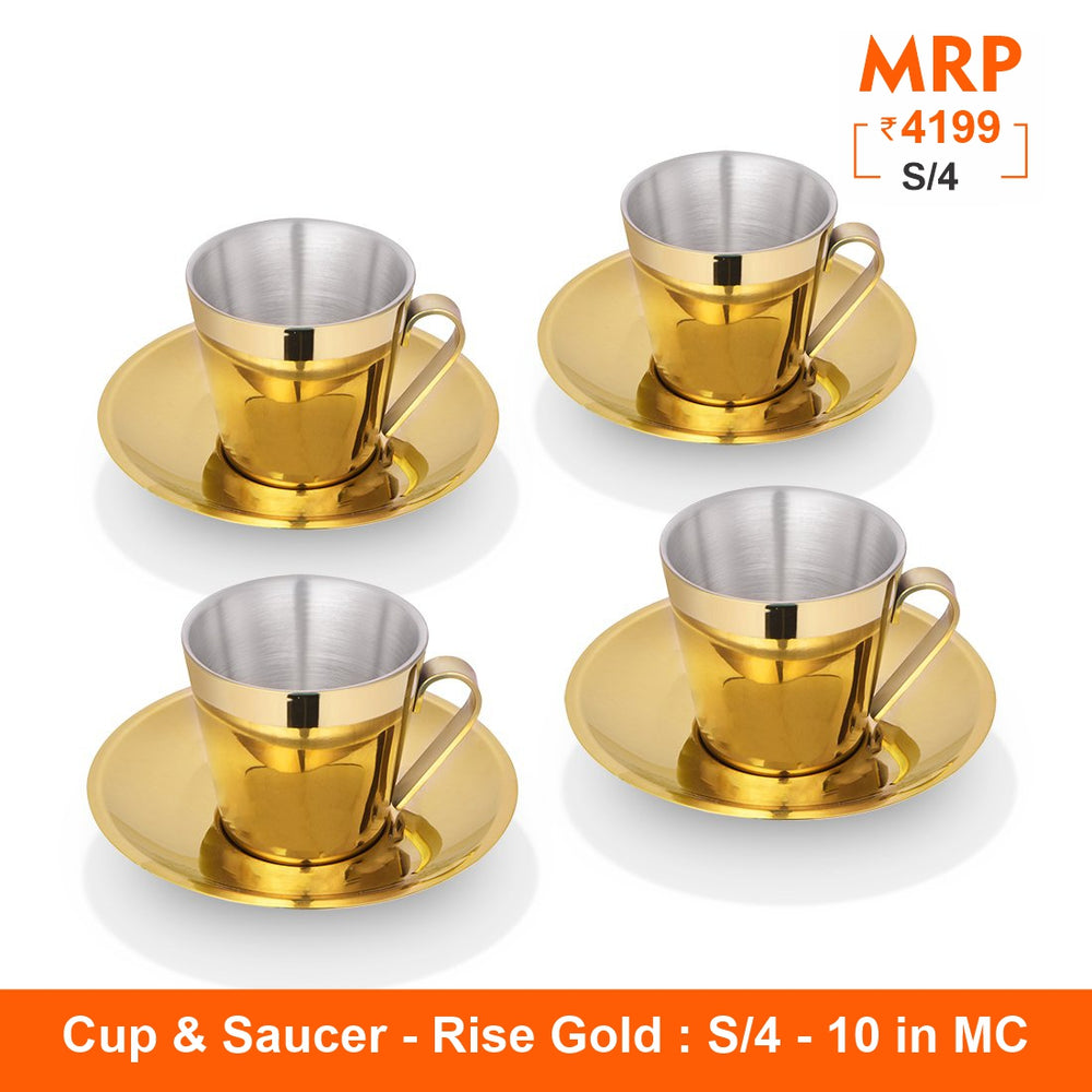 Shri and Sam present serve hot beverages to your guests in style with this rose gold Cup and Saucer. Made from premium quality stainless steel, the double-wall helps to serve tea or coffee, since its double-wall it does not require handles, that make it get its classy looks. This set is silver in color, which has a mirror finish on the outside and matt finish on the inside. This product will not break or bend easily, is highly durable, which makes it excellent for everyday use. This set by Shri and Sam will certainly get you compliments when you place in front of a guest. This set is 100% food-safe, that allows it to not react with the food. With this price, this is a must-buy set for any kind of kitchen, as it will be a huge plus in your serve ware category.