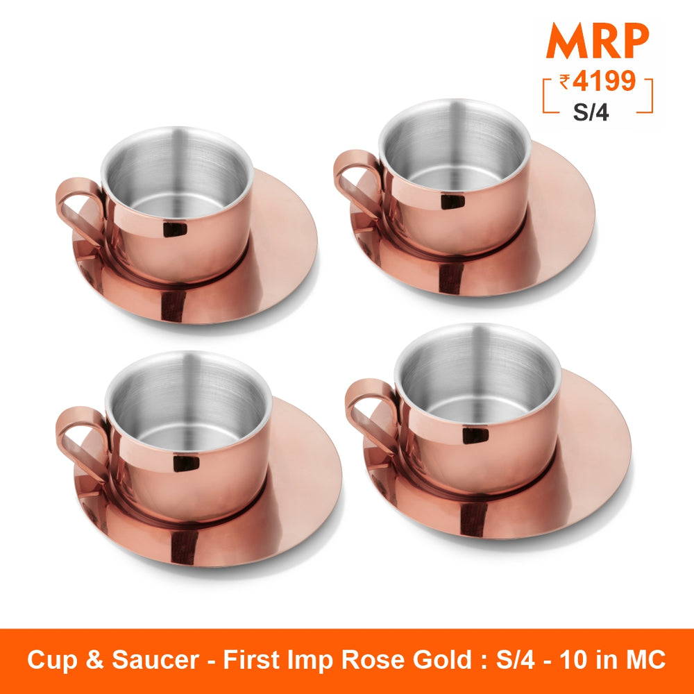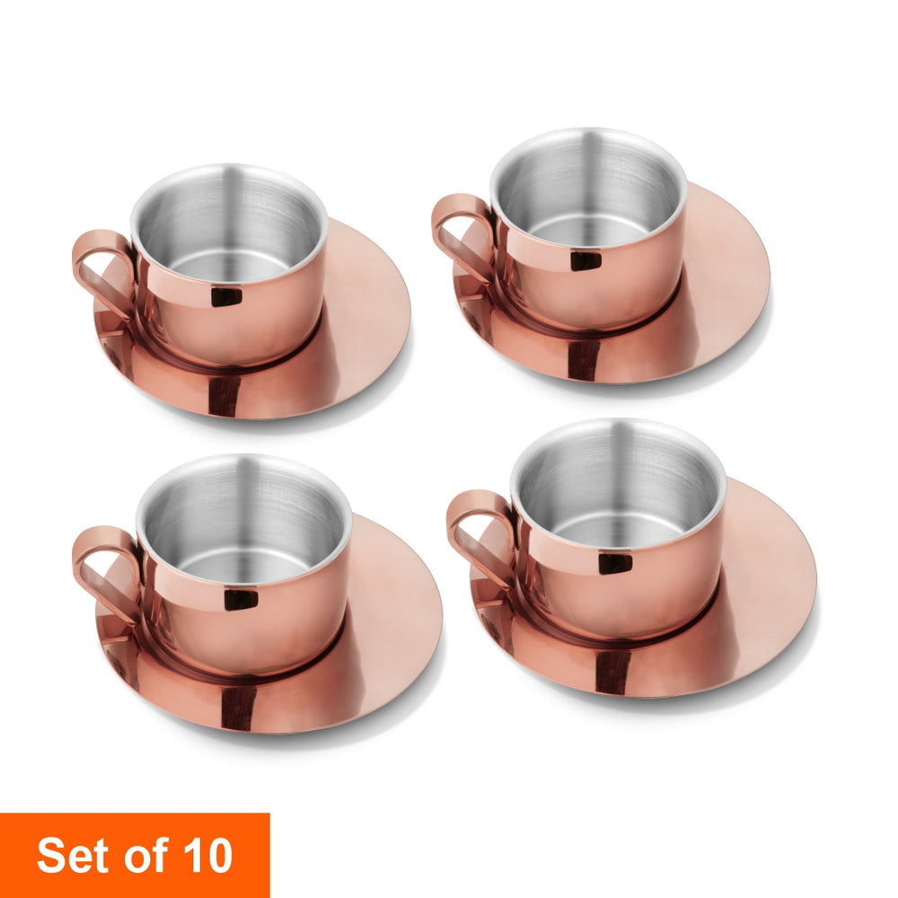 Shri and Sam presents serve hot beverages to your guests in style with this Cup and Saucer set. Made from premium quality stainless steel, the double wall helps to serve tea or coffee, since its double wall it does not require handles,that makes it get its classy looks. This set is silver in color, that has mirror finish on the outside and matt finish on the inside. This product will not break or bend easily, is a highly durable, which makes it excellent for every day use. This set by Shri and Sam will certainly get you compliments when you place it front of a guest. This set is 100% food safe, that allows it to not react with the food. With this price, this is a must buy set for any kind of kitchen, as it will be a huge plus in your serve ware category.