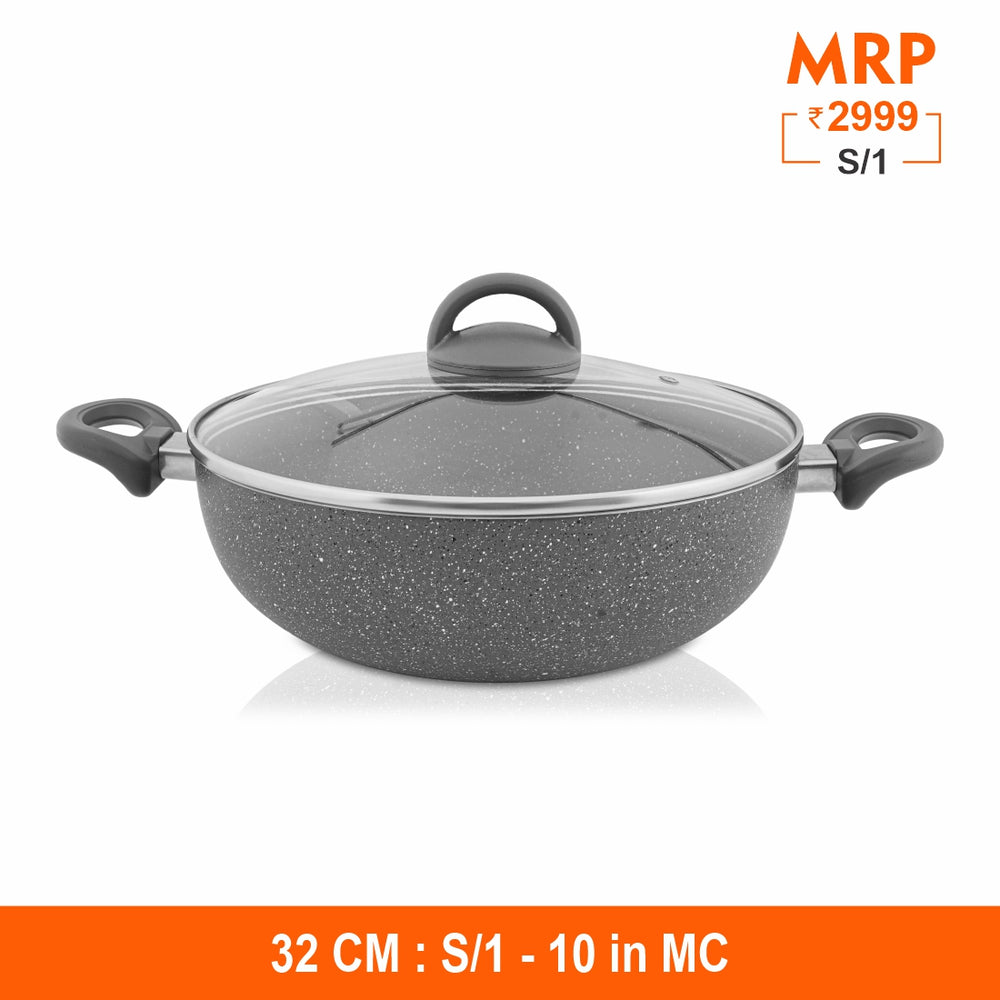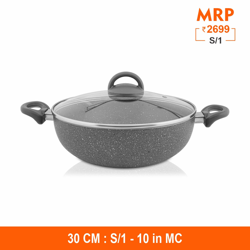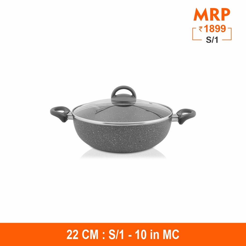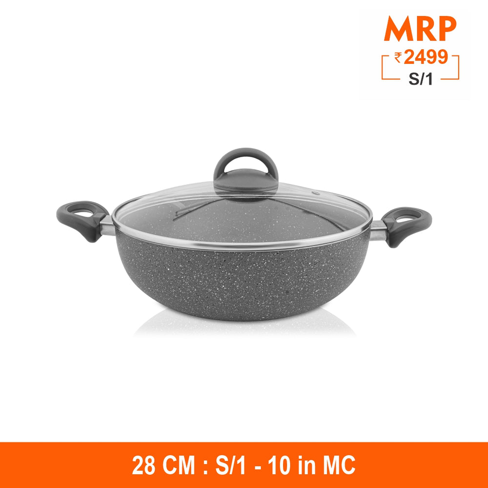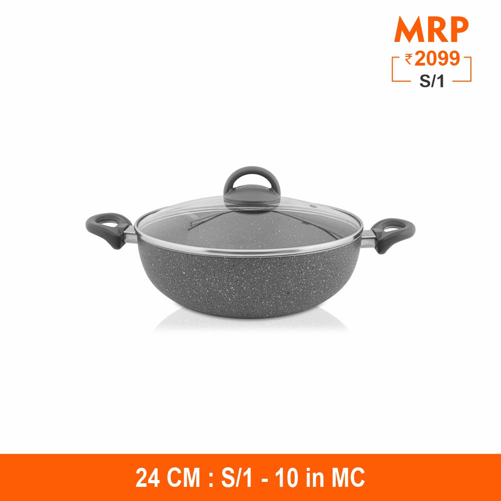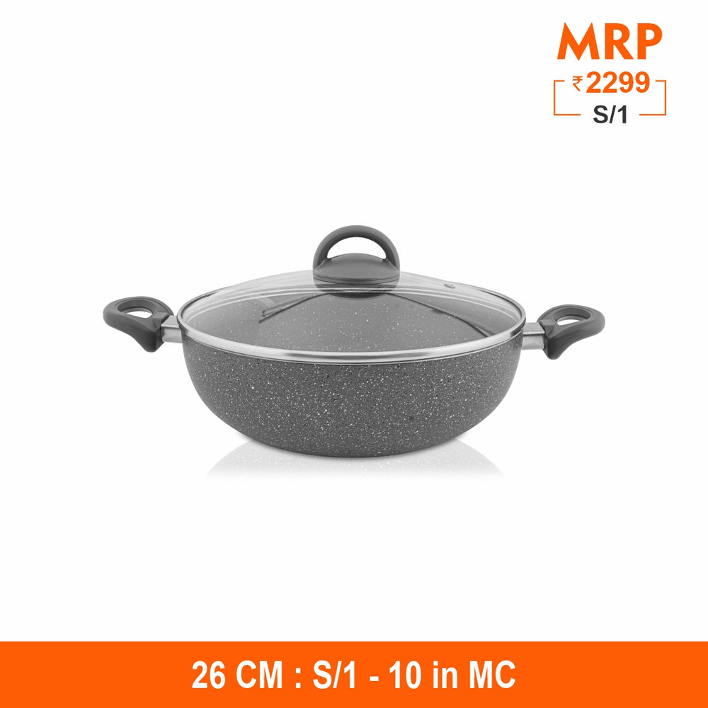 This Primestone Deep Fry Pan with Glass Lid by Shri and Sam is built in heavy gauge aluminum that has non stick coating. The handle is soft touch handle that smoothens the grip on your hand while lifting it. This Deep Fry Pan is easy to maintain and takes less space in your kitchen. This product has an induction bottom which means that it is compatible to all heating sources like gas, electric, induction etc.