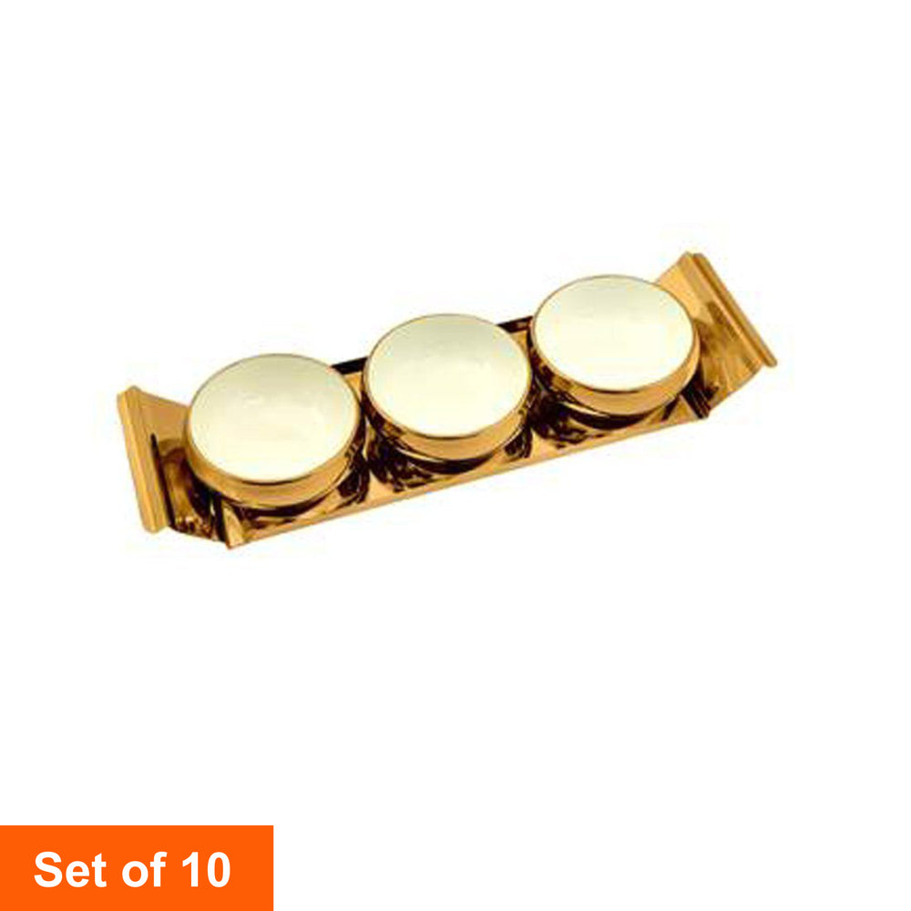This Shri and Sam Lunia bowl Set is made from high quality stainless steel that has shiny finish on the outside. This product will ease the way you serve and would be a great addition to your kitchenware as this product looks elegant and is simple enough to suit any kind of table or kitchen. This Bowl set is completely food safe and you can serve food like rice, daal, sabzi in it as well. This bowl set has a white color on the inside which elaborates its beauty and this is definitely the perfect choice to impress any guest. This product also comes with a stainless steel tray that is pretty in looks and rightly designed. This bowl set can also be a perfect gift for small occasions. Lunia bowl set is a very durable product and it can also be cleaned and maintained easily. This serving set would be ideal enough for serving of 3-4 people and is perfect to serve with tea and coffee. This can go really well with Shri and Sam's Nikki Dinner Set or Nifty Thali Set.