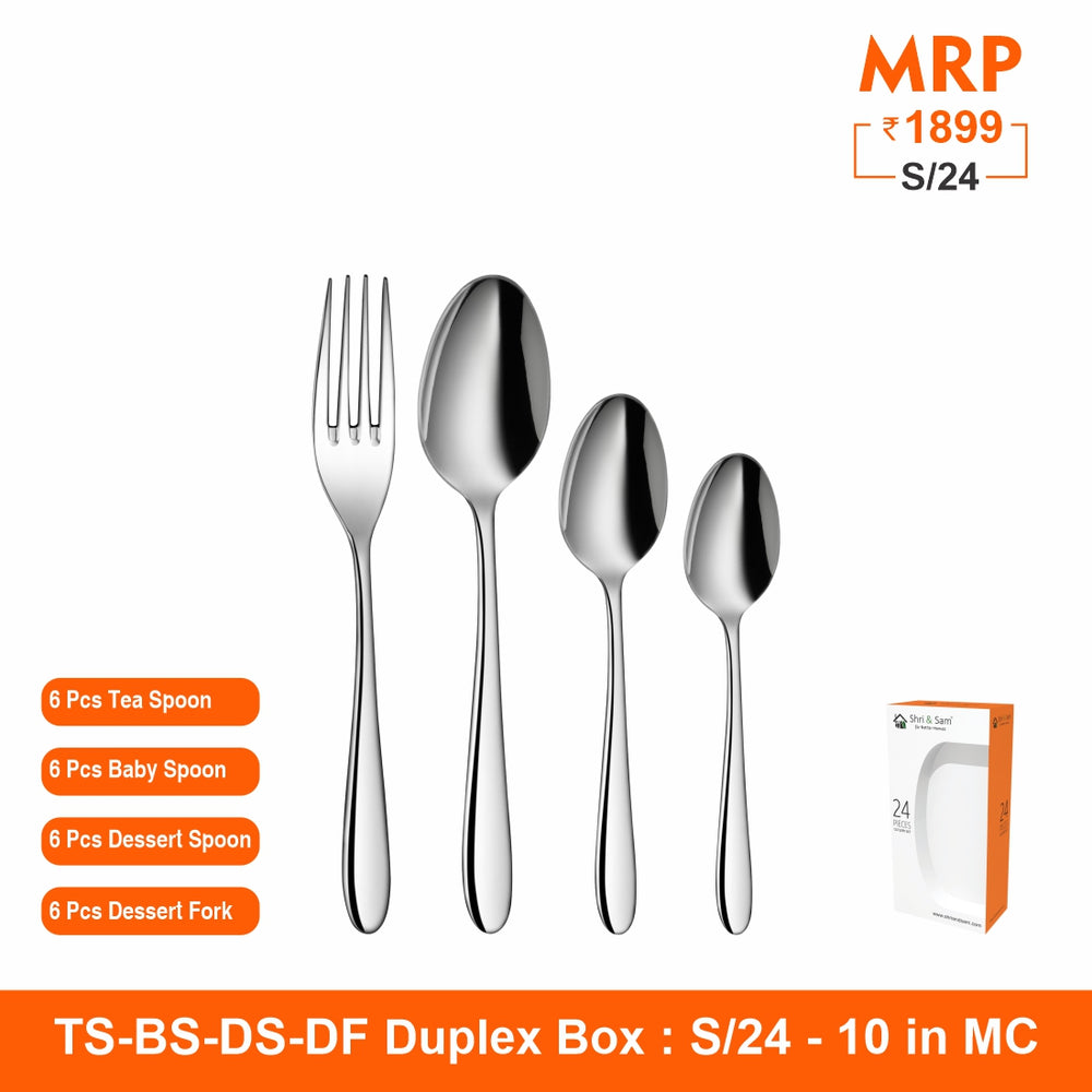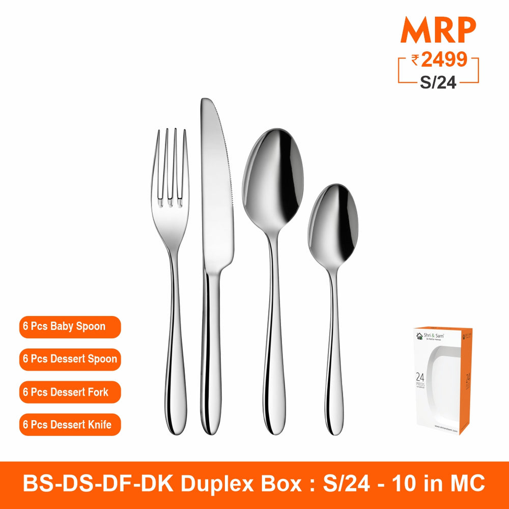 Revive your table with the Shri and Sam Gracy cutlery set. This product gives it grace along with the classic shape that allows it to coordinate effortlessly with an existing tableware theme, this makes it the most sold cutlery set outside India. This cutlery set is made with the best quality stainless steel and it has a mirror finish. The thickness of this cutlery set is appropriate and this is designed to ease out your dinning experience since this is cup rolled. This cutlery set is a must have for everyday use as it adds style to your dinner setting.