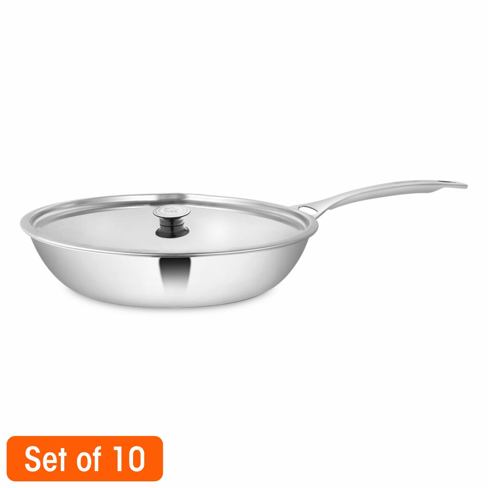 Platinum Series by Shri and Sam is a highly durable and rust free. This product is made from premium quality 430 stainless steel, it is Food Grade and Food Safe. this Fry pan is in shiny finish which will make it suit any type of kitchen counter. This Fry Pan also comes with a stainless steel lid for all types of cooking process. This Fry pan has a sturdy stainless steel handle, it also has a very good grip. It is a must have for all types of cooking style and can be great choice for everyday cooking.