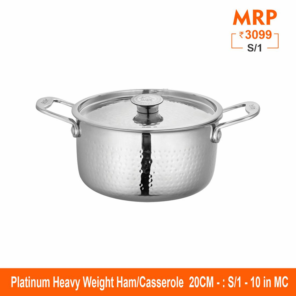 This Shri and Sam Platinum Hammered Casserole is perfect for everyday cooking as it is durable and rust free. This Casserole is made from 430 stainless steel series which helps the casserole work on all heating sources. It basically means this is a healthy for cooking. This casserole is simple in looks yet elegant which is why it will suit any type of kitchen or any type of cooking style. This casserole also comes with a stainless steel lid and the complete product is in shiny finish. This casserole can be great for everyday cooking and enjoying great meals with your loved ones.
