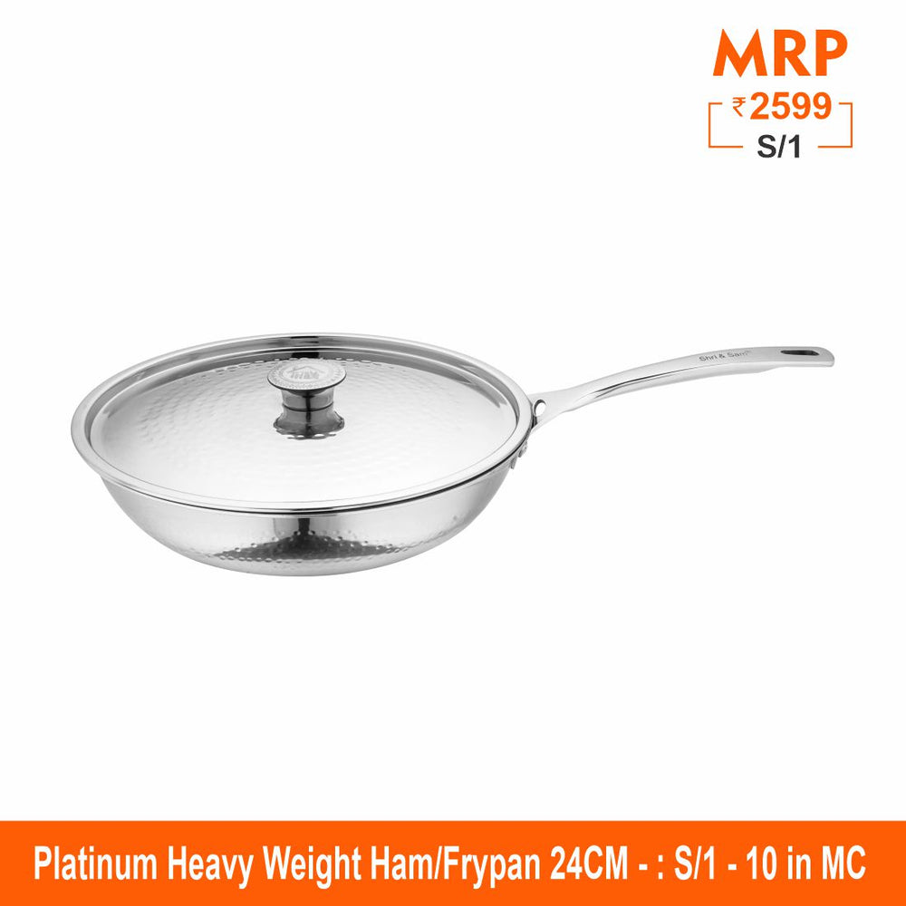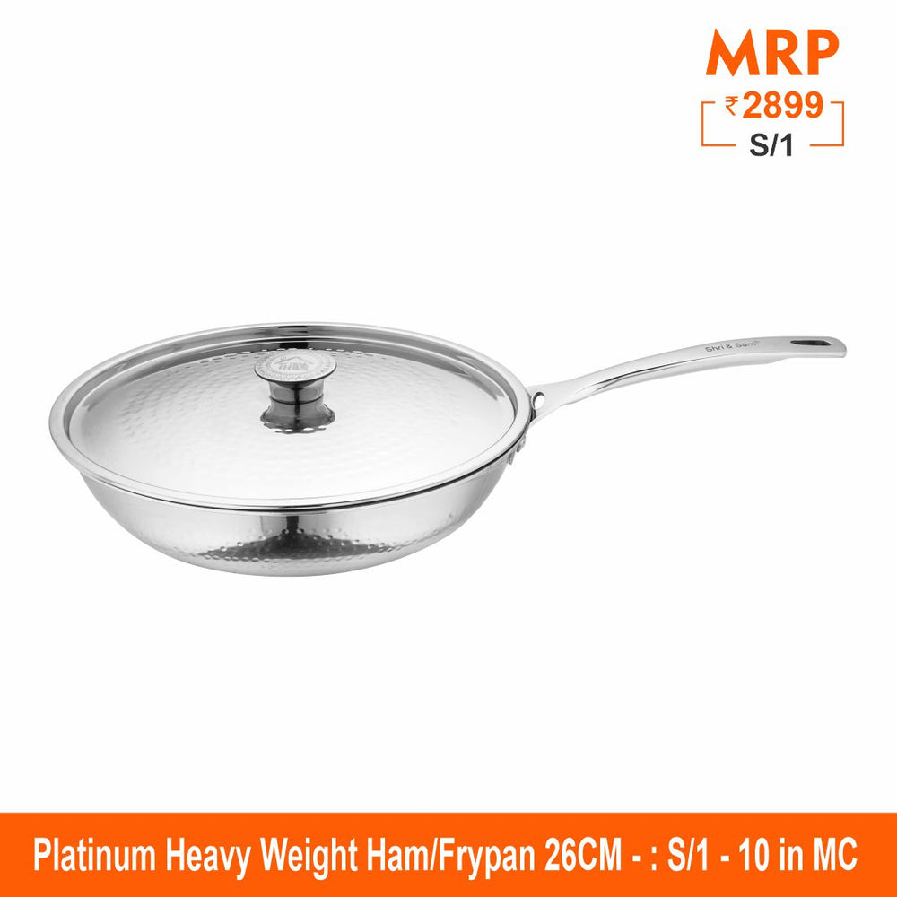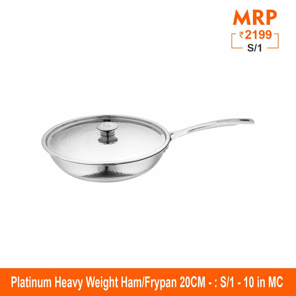 Platinum Series by Shri and Sam is a highly durable and rust free. This product is made from premium quality 430 stainless steel, it is Food Grade and Food Safe. this Fry pan is in shiny finish which will make it suit any type of kitchen counter. This Fry Pan also comes with a stainless steel lid for all types of cooking process. This Fry pan has a sturdy stainless steel handle, it also has a very good grip. It is a must have for all types of cooking style and can be great choice for everyday cooking.