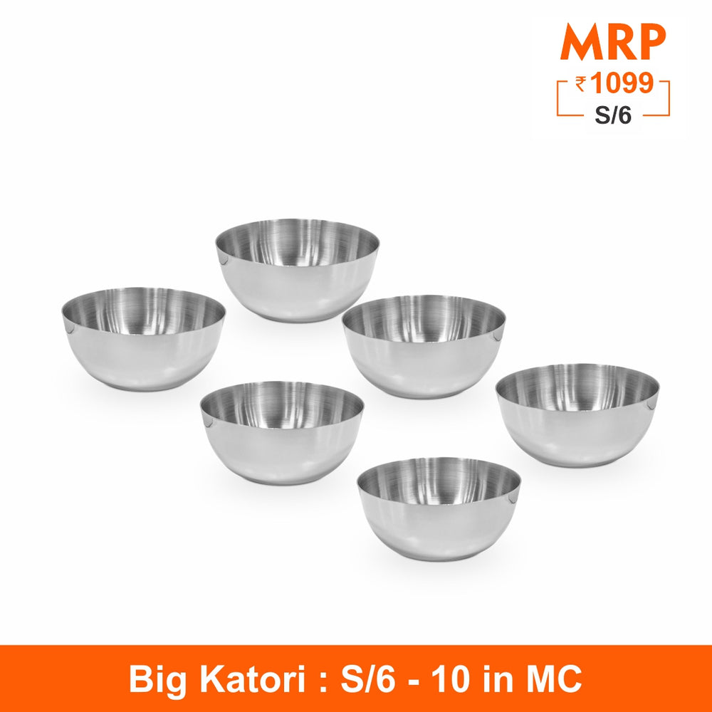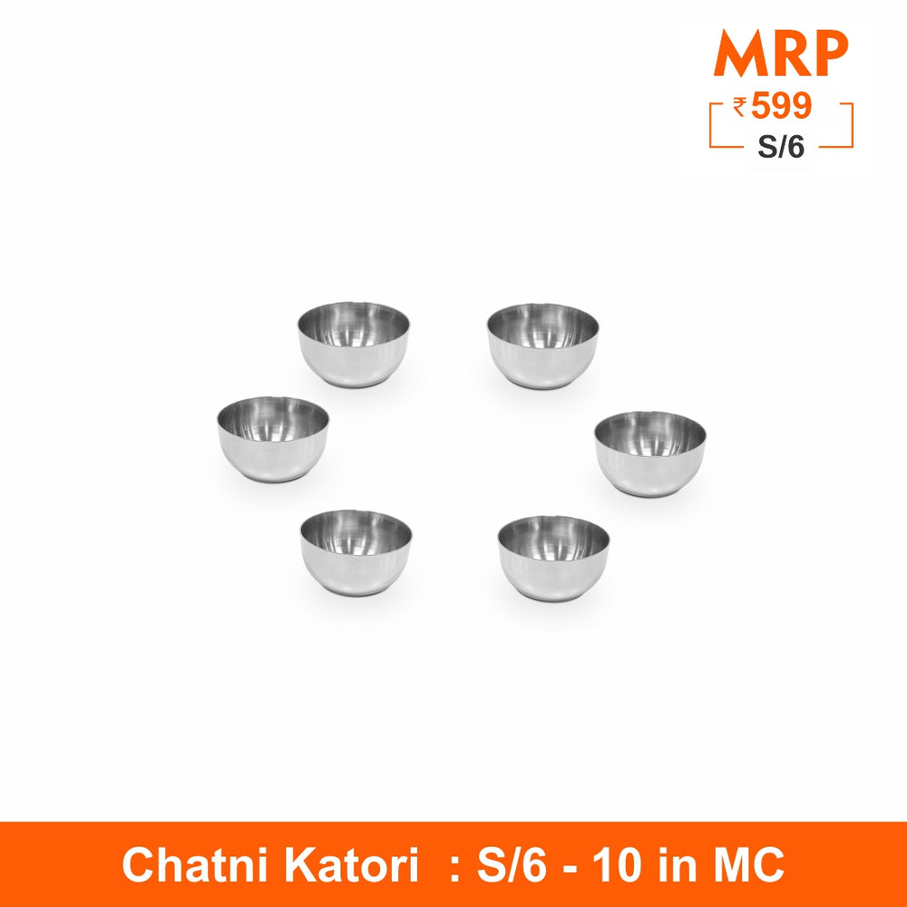 Diameter of bowls - Big bowls: 11 cm, Small bowls: 8 cm, Chutney bowls: 6 cm