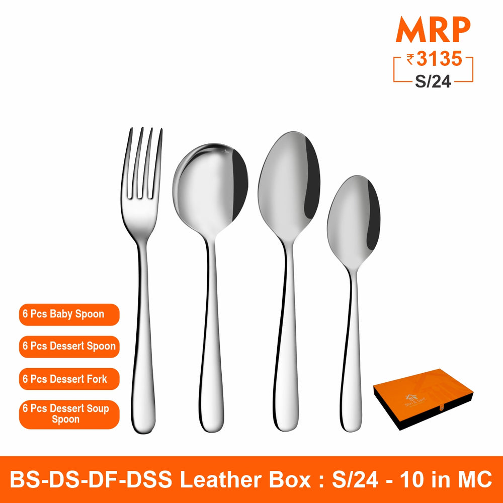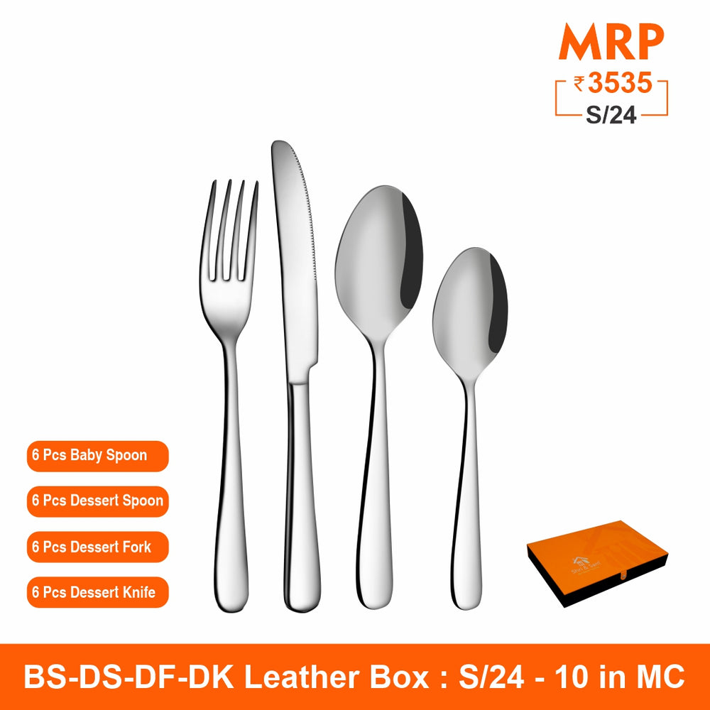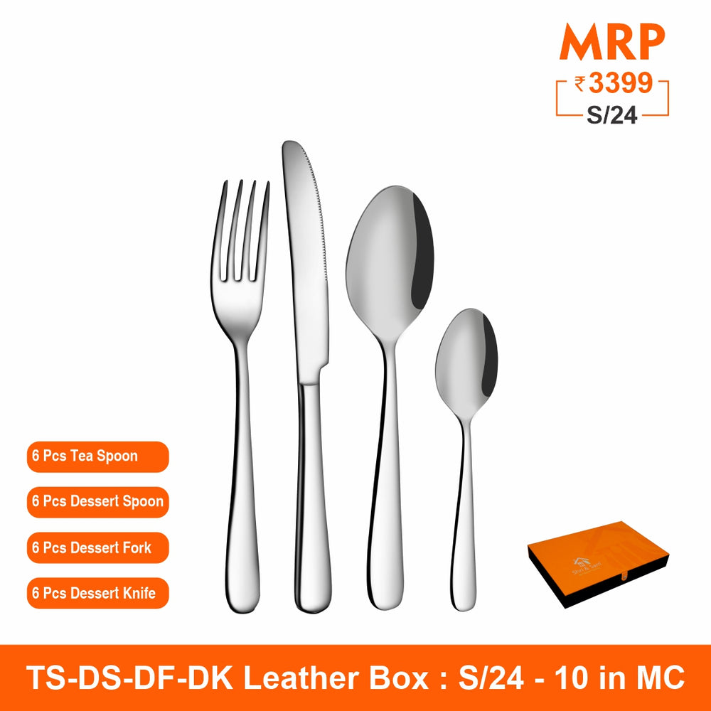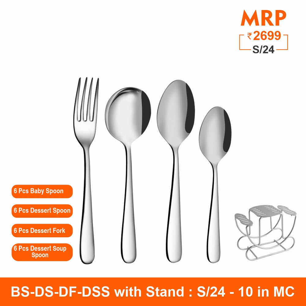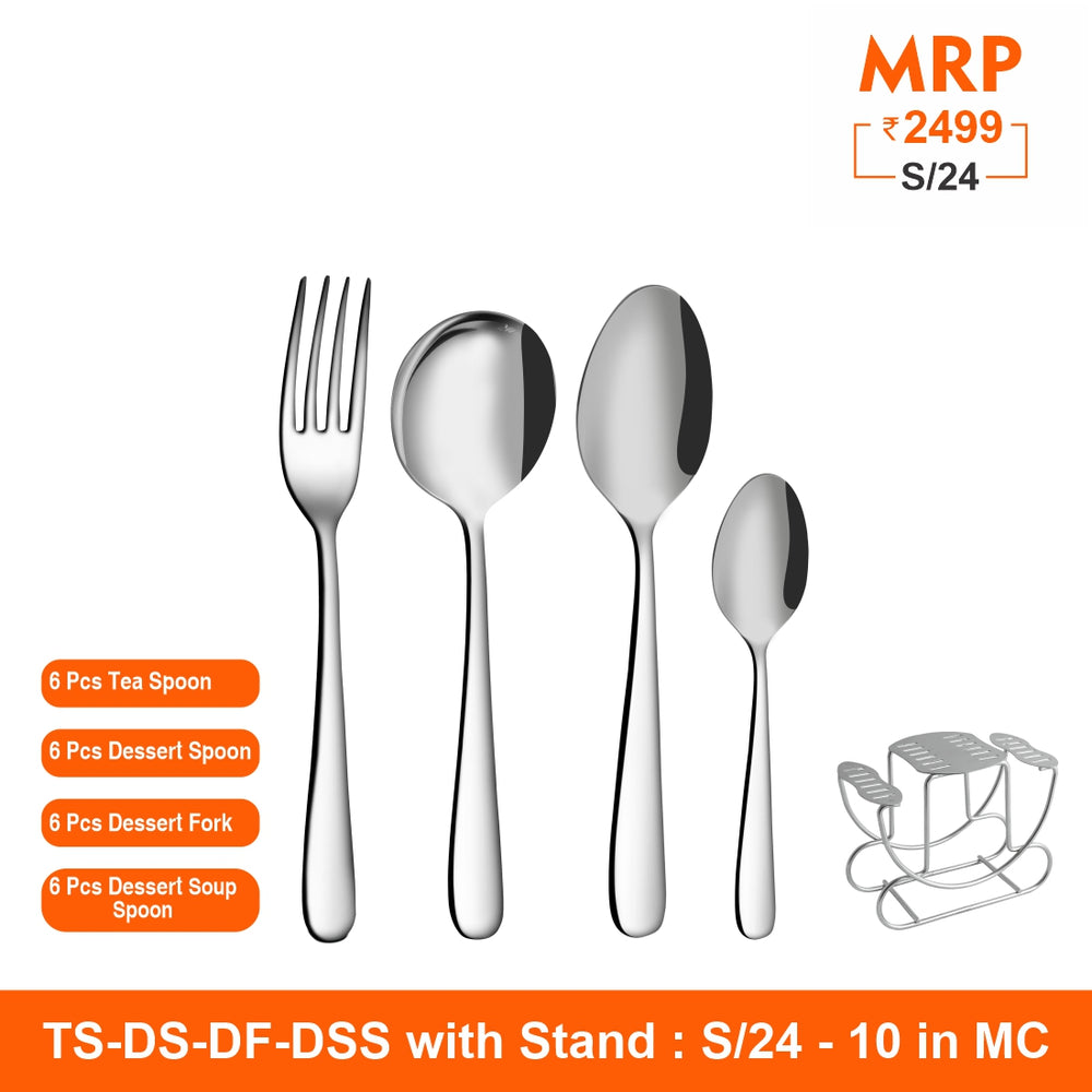 Revive your table with the Shri and Sam Monika cutlery set. This product has a two tone finish that gives it grace along with the classic shape that allows it to coordinate effortlessly with an existing tableware theme, this makes it the most sold cutlery set outside India. This cutlery set is made with the best quality stainless steel and it has a mirror finish. The thickness of this cutlery set is appropriate and this is designed to ease out your dinning experience since this is cup rolled. This cutlery set is a must have for everyday use as it adds style to your dinner setting.
