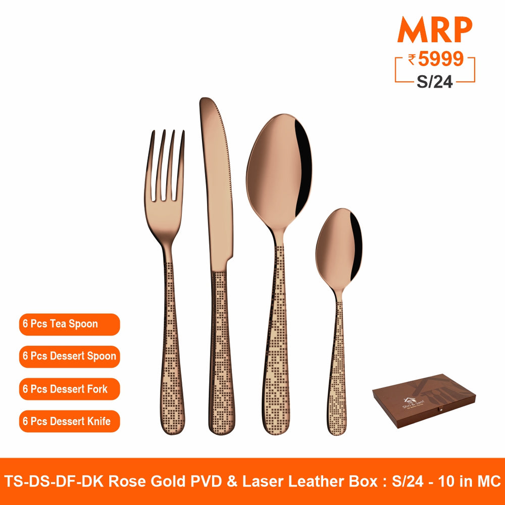 Revive your table with the Shri and Sam Monika cutlery set. This product has a two tone finish that gives it grace along with the classic shape that allows it to coordinate effortlessly with an existing tableware theme, this makes it the most sold cutlery set outside India. This cutlery set is made with the best quality stainless steel and it has a mirror finish. The thickness of this cutlery set is appropriate and this is designed to ease out your dinning experience since this is cup rolled. This cutlery set is a must have for everyday use as it adds style to your dinner setting.