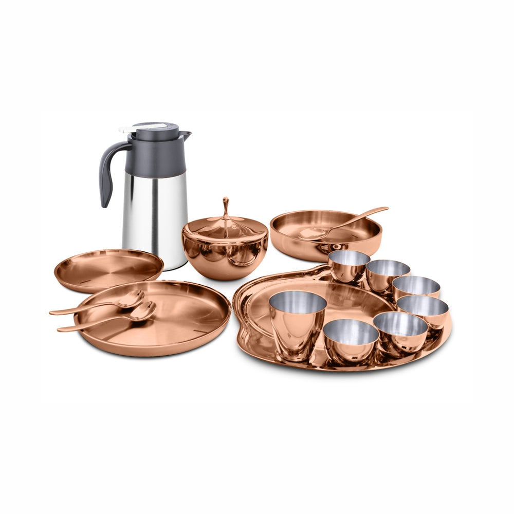 Item Content - Full Plate(D/W) - 06 N, Quarter Plate (D/W) - 06 N, Bowls - 30 N, Serving Bowls (D/W) - 04 N, Serving Bowls Lid (D/W) - 04 N, Water Pitcher (Vacuum) - 01 N, Glass - 06 N, Serving Spoons - 05 N, Dinner Spoons - 06 N, Rice Tray (D/W) - 01 N, Salad Bowl (D/W) - 03 N