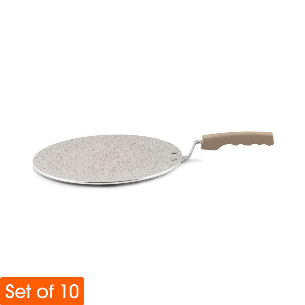 The perfect work horse for your kitchen is here, this Shri and Sam Rockline multi Tawa can be used for several purposes. The thickness to this tawa is heavy(5mm) which makes it ideal for rotis, paranthas, dosas, pancakes and lot more. This non stick multi tawa is made from heavy gauge aluminum that has a 3 layer non stick coating on it with 3 layers of spatter as well. This product looks like a rock, which means it is designed in a fashion that ensures its durability the non stick coating on this product is chemical PFOA free. This cookware is dishwasher friendly and comes with soft touch handles. This product is completely food grade and food safe. This multi tawa is user friendly and works with all heating sources like induction, gas, electric etc. since it is a non stick tawa it requires minimal oil in cooking which makes it a healthy choice. This multi tawa is all about sophisticated combination of style, efficiency, safety and user friendly features to add comfort to your everyday life. This product also has a 2 years of warranty.