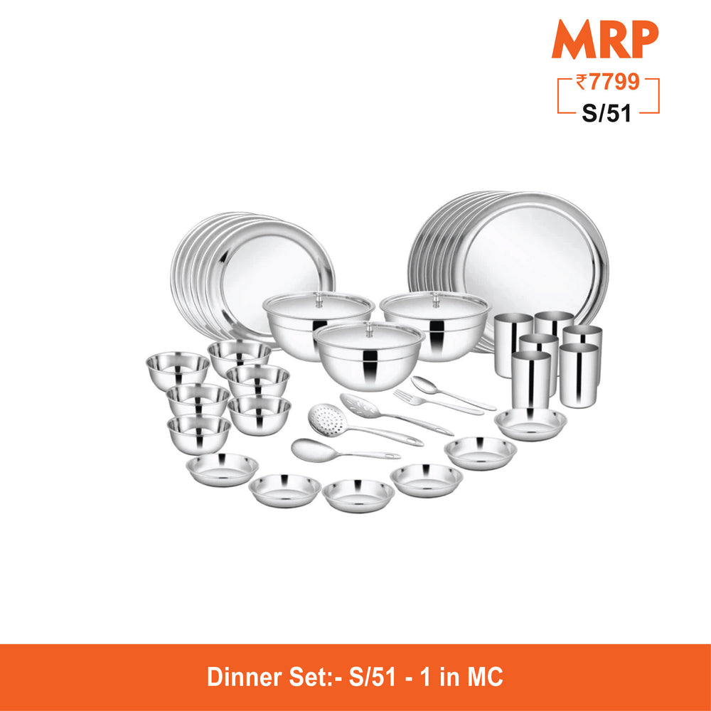 This Shri and Sam 98 PCS Stainless Steel Dinner Set has a very well established look in your kitchen and ensures a better way of living.