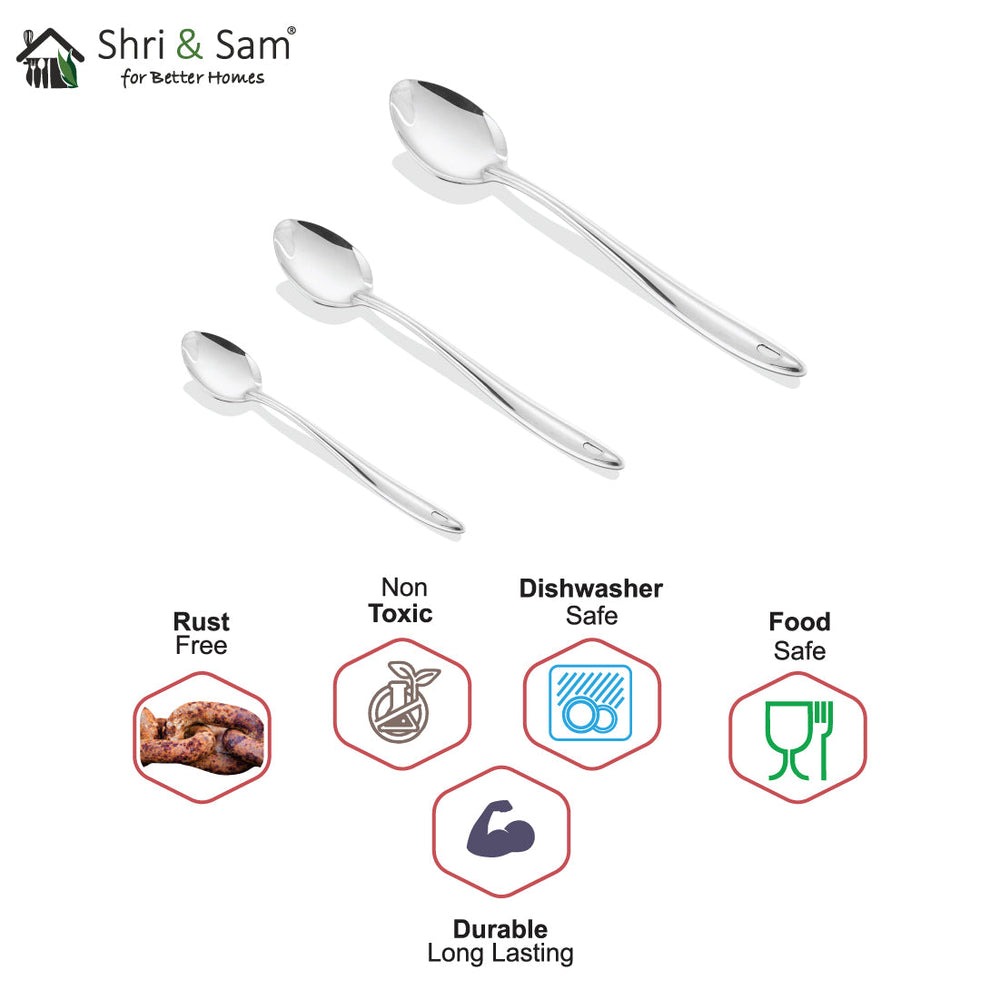 This Shri & Sam Sigma King Basting Spoon Solid is an everyday essential for all types of kitchens. This is made from high-quality stainless steel which is highly durable and rust free. This Sigma King Basting Spoon Solid is perfect as it does not bend easily and can be easily cleaned and maintained. This can help in all types of cooking styles and dishes. It has a shiny finish which will make it a good add on to your kitchen tool set. It can also be stored easily as it has a hole at the bottom of the handles, it can also be hanged on a hook. This is a must-have for everyone who is looking for a perfect kitchen toolset for everyday purpose.