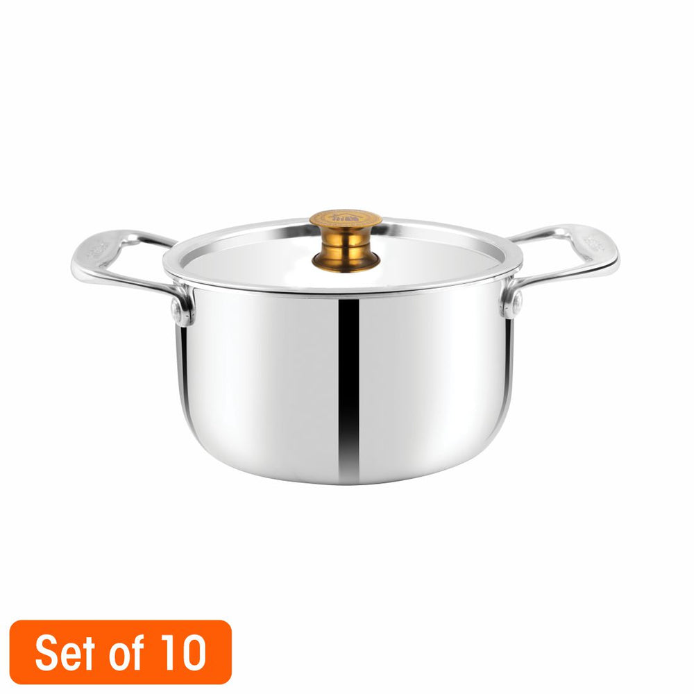 This Shri and Sam Triplica Casserole is perfect for everyday cooking as it is durable and rust free. This Casserole is made from premium quality stainless steel which has three layers, the bottom one is 430 stainless steel series which helps the casserole work on all heating sources, the second layer is Aluminium for which helps in faster cooking and the third which is the top layer, it is 304 stainless steel series which is food safe and food grade. It basically means this is a healthy for cooking. This casserole is simple in looks yet elegant which is why it will suit any type of kitchen or any type of cooking style. This casserole also comes with a stainless steel lid and the complete product is in shiny finish. This casserole can be great for everyday cooking and enjoying great meals with your loved ones.