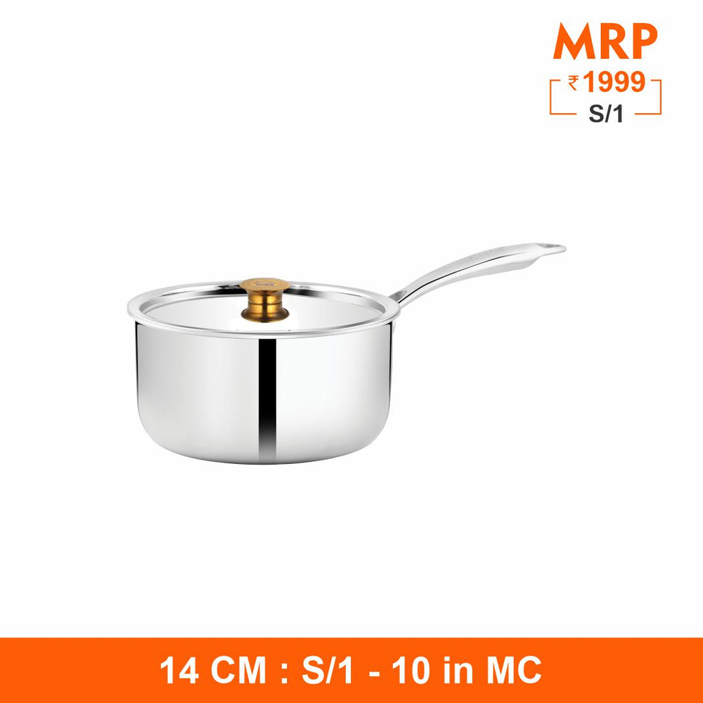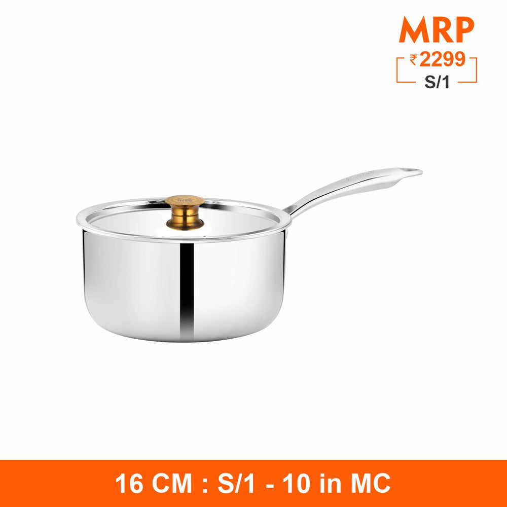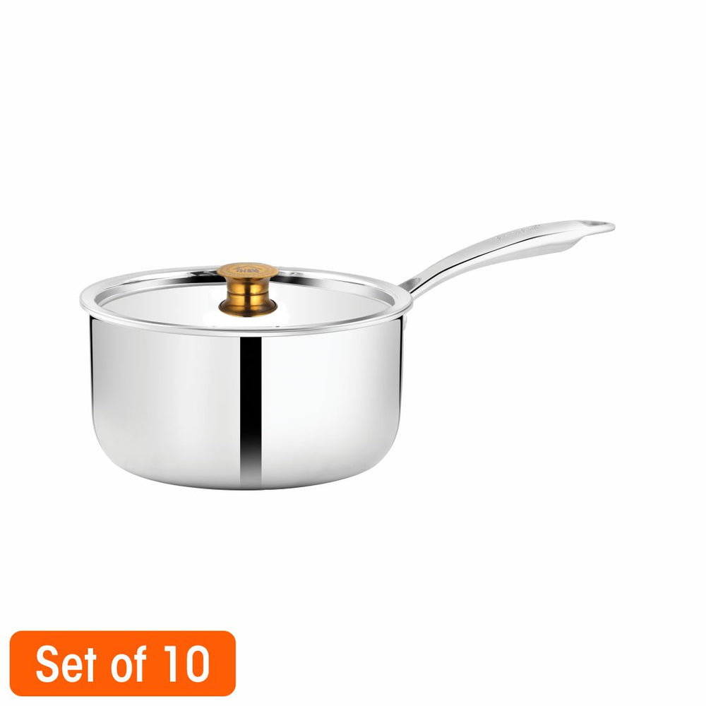 This Shri and Sam Saucepan is built from high-quality stainless steel which is highly durable and rust free. This saucepan has a shiny finish which is perfect for any type of kitchen style. This saucepan also comes with a lid, so it can support different cooking styles. This saucepan can be a great option for everyday use for making tea, coffee, making sauce for any type of dish etc. This saucepan is the right option as it has three layers, the bottom one supports all type of heating sources. The middle one is a better conductor of heat so helps the cooking process get faster. The top layer is Food grade and Food Safe which ensures healthy cooking. It is a must buy as it can be a great add on to your cookware range.
